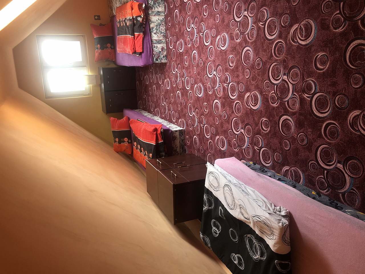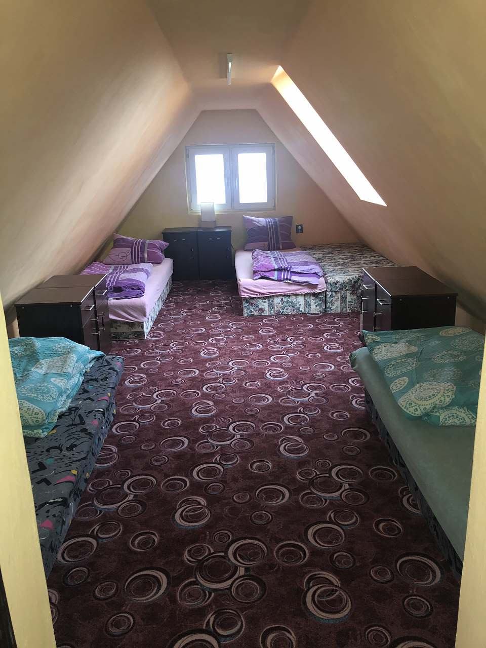 wspólna sypialnia na poddaszu z 5 łóżkami
